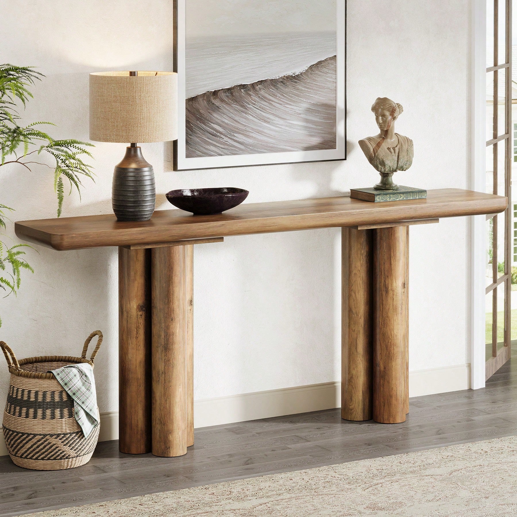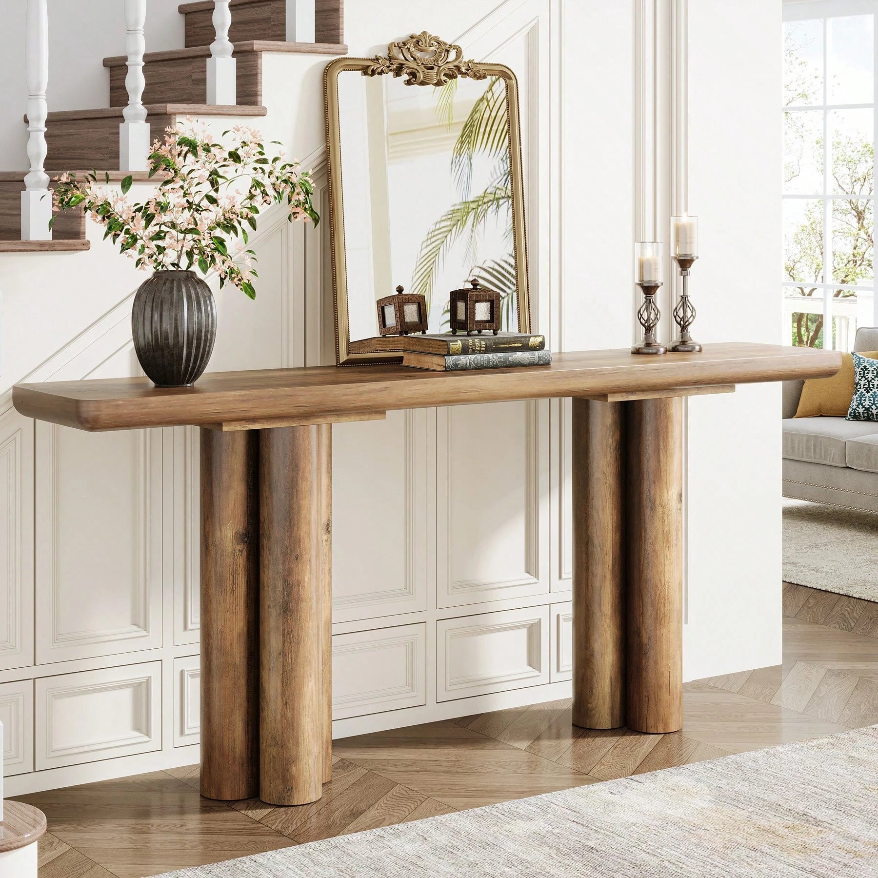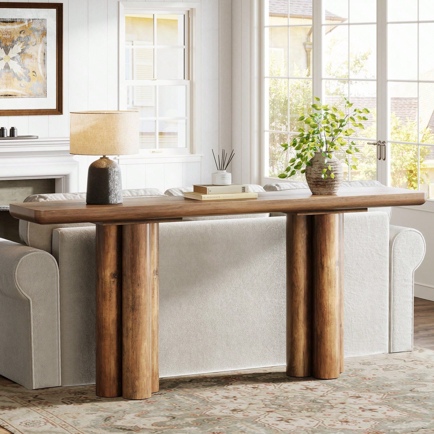 Add spacious style and rustic function to your space with this extra-long 70.9″ farmhouse console table. Designed to stretch behind large sofas or along open walls, this narrow table features a natural wood finish with clean lines and visible grain for a warm, lived-in look. Its open lower shelf offers additional space for baskets, books, or décor, while the sturdy engineered wood construction ensures long-term durability. Perfect for entryways, living rooms, or wide hallways, this table blends classic charm with practical surface area—ideal for high-traffic areas needing both beauty and utility.