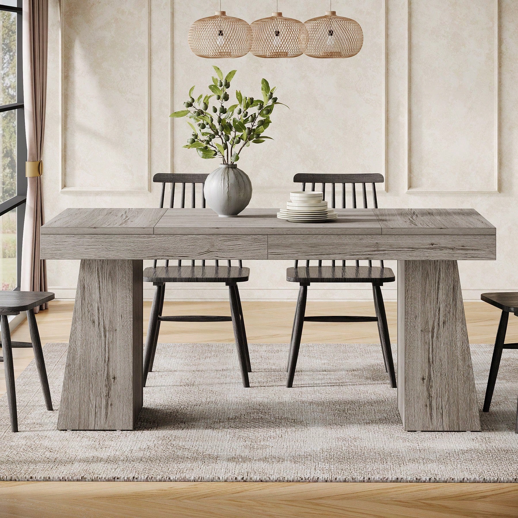 Elevate mealtime with this 55" Wood Dining Table, blending mid-century modern charm and everyday practicality. Crafted with a robust rectangular tabletop and sturdy solid wood legs, it comfortably fits 4–6 diners—perfect for family dinners or casual gatherings. The clean lines and warm finish offer a versatile aesthetic that complements both contemporary and classic interiors. With durable construction and a hassle-free assembly included, this table brings lasting style and functionality to your dining space.