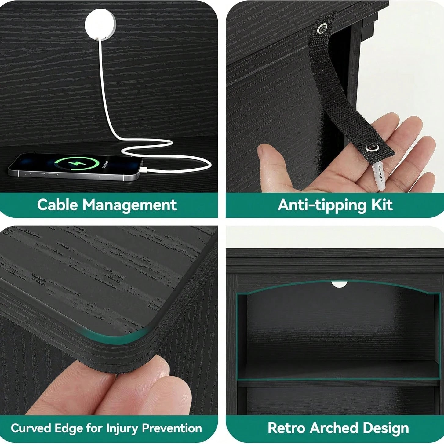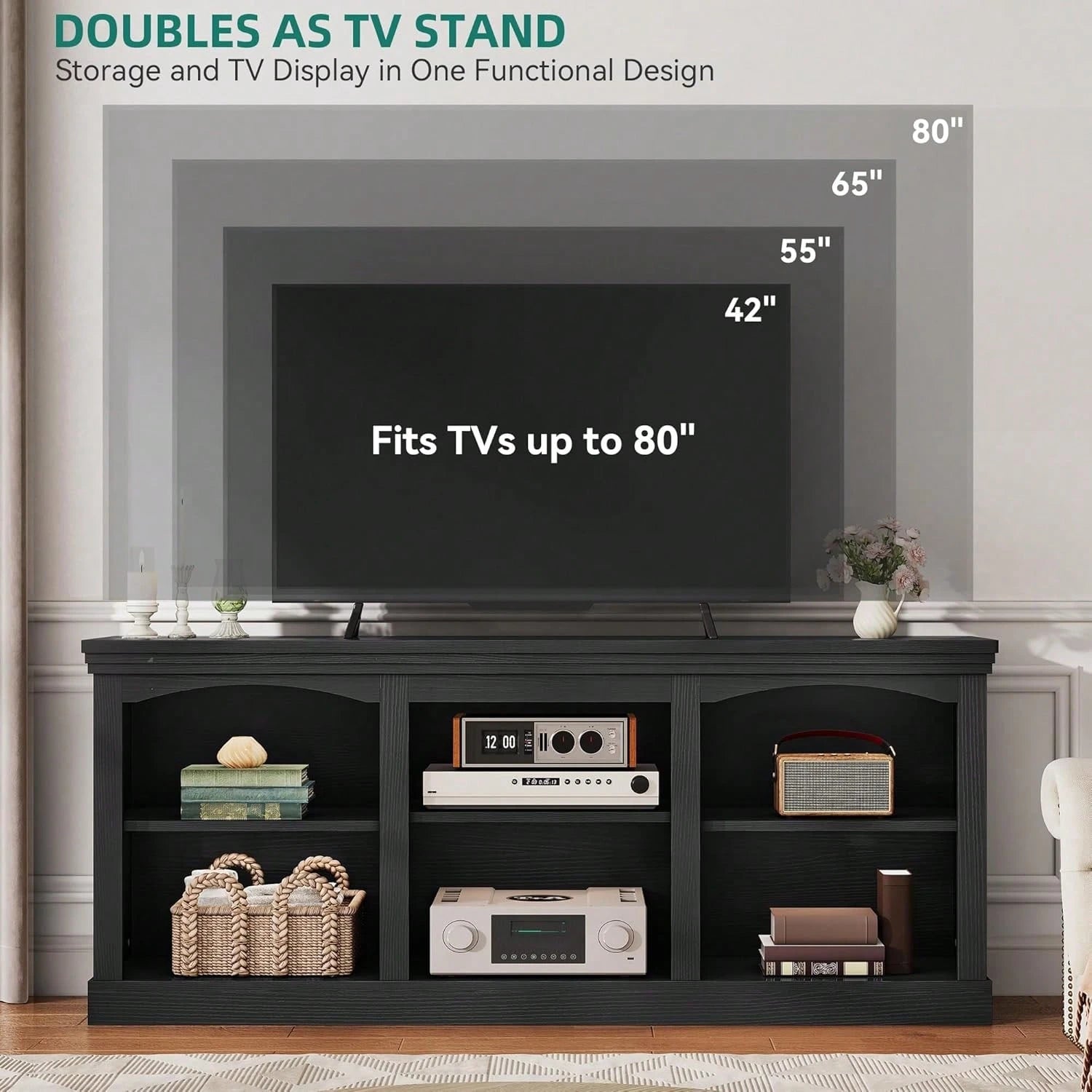 Elevate your living room with the Aspen Farmhouse TV Stand With Adjustable Shelf—a versatile media console engineered to accommodate TVs ranging from 55″ to 80″. Designed with timeless farmhouse charm, this console blends clean lines and functional detailing to suit a variety of home styles. The expansive surface supports modern flat-screen TVs, while integrated cable management keeps clutter at bay for a tidy and polished setup. Constructed from durable P2-rated particleboard with supportive legs, it offers both stability and style. Keep electronics and accessories organized with the flexible storage design, including adjustable shelves that adapt to your needs.