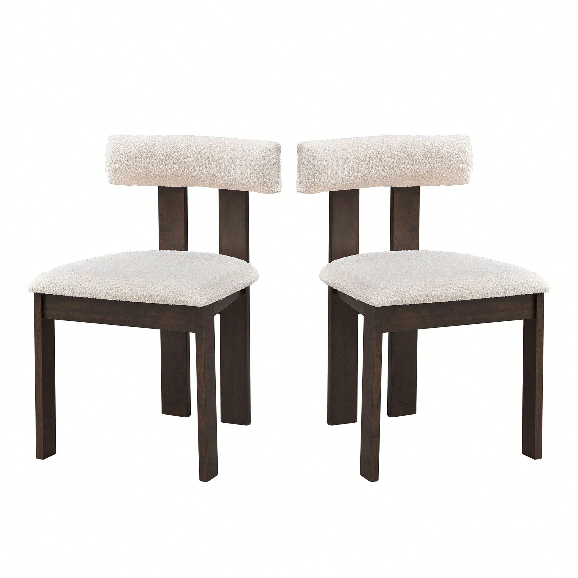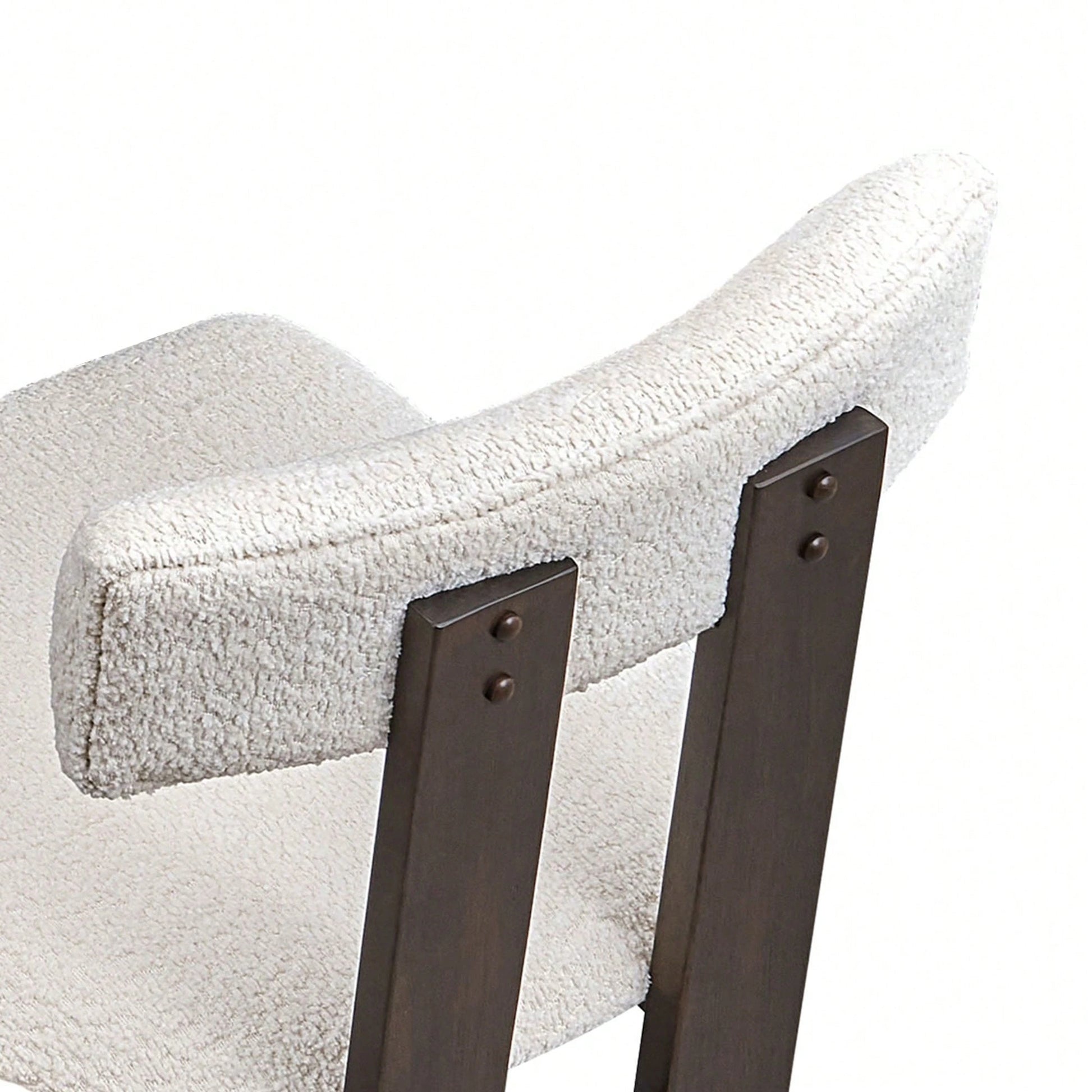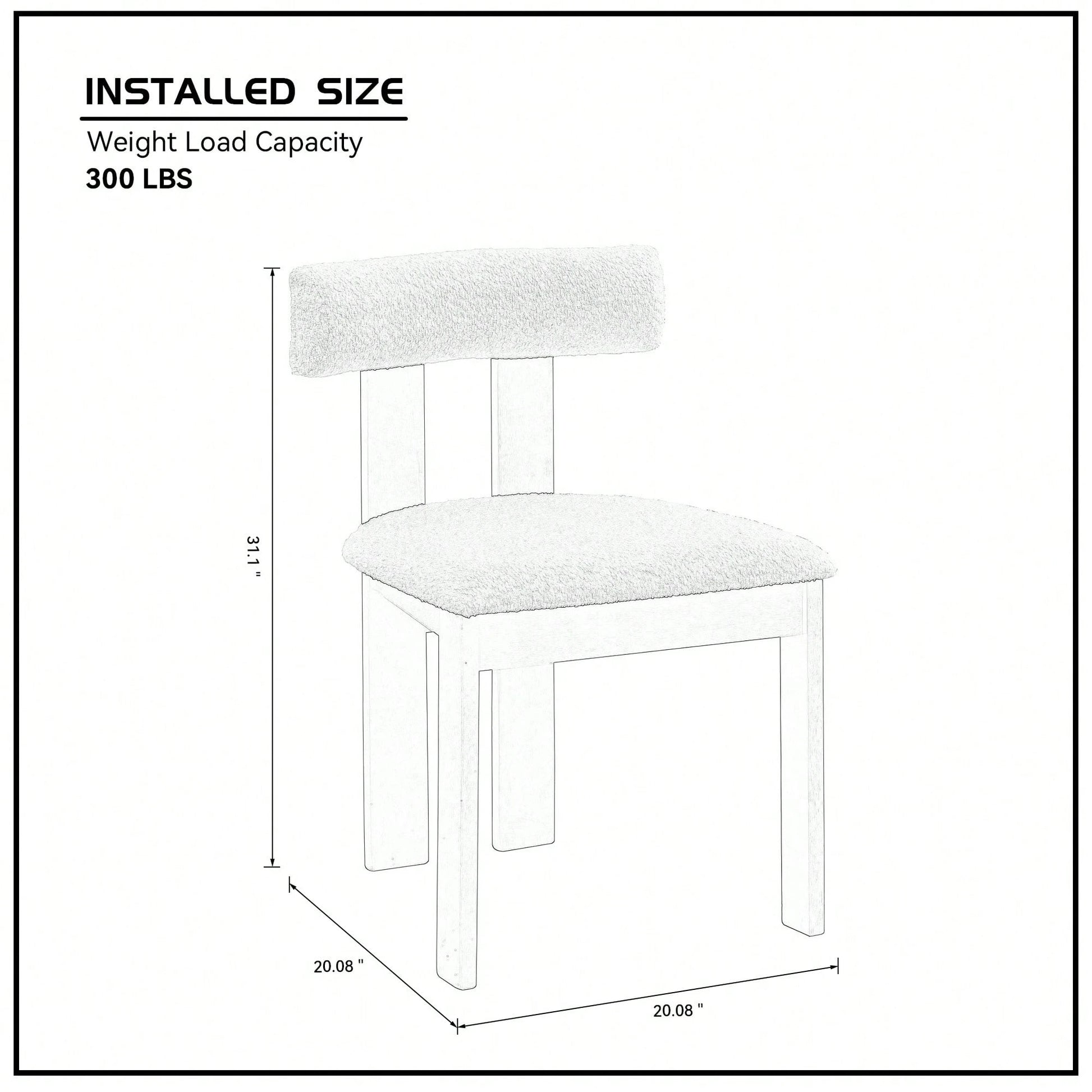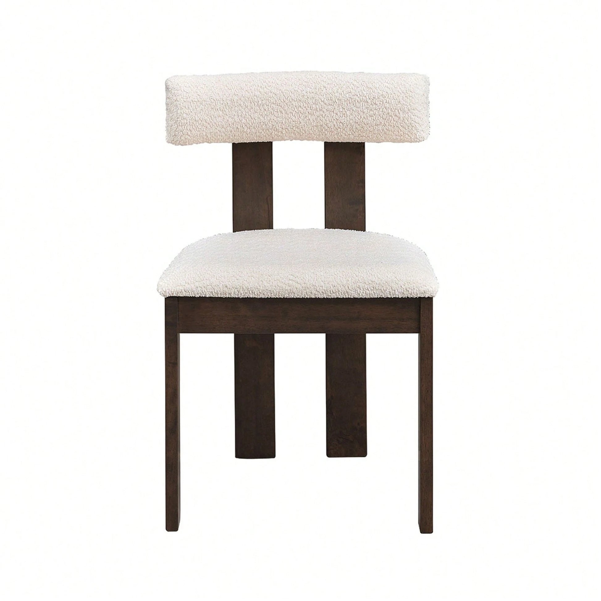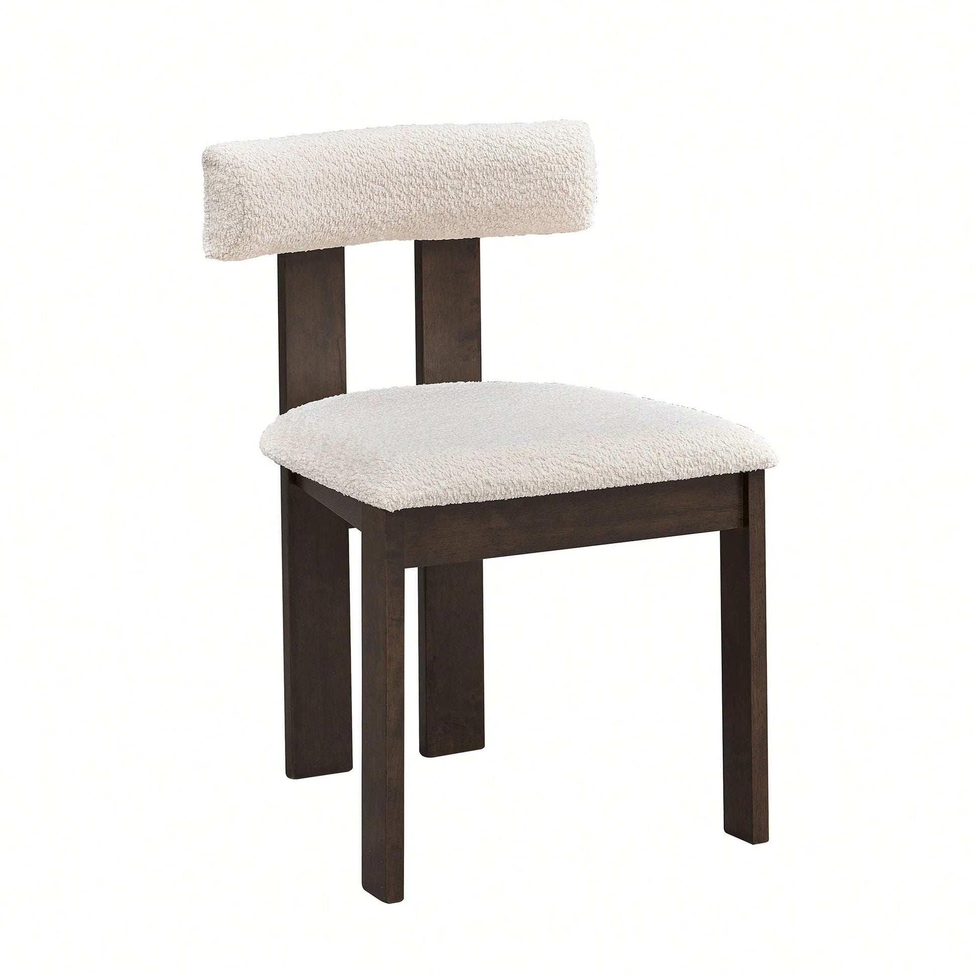 Blend modern texture with farmhouse warmth with this pair of bouclé-upholstered wooden dining chairs. Featuring plush bouclé seats and stylish open-back frames, each chair offers a soft, tactile feel while the wooden legs add natural charm. The mid-century design and neutral tones complement a variety of décor styles—from cozy farmhouses to sleek contemporary spaces. Comfortable and durable, these chairs are perfect for dining rooms, cafés, or as accent seating in living spaces.