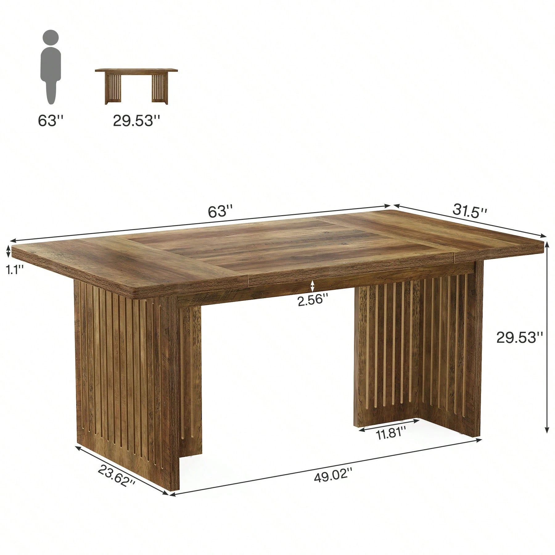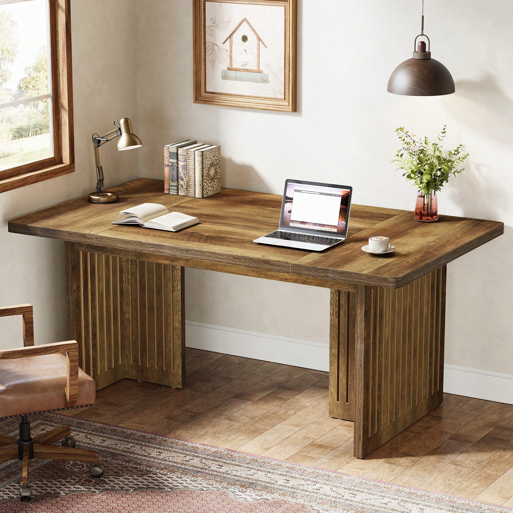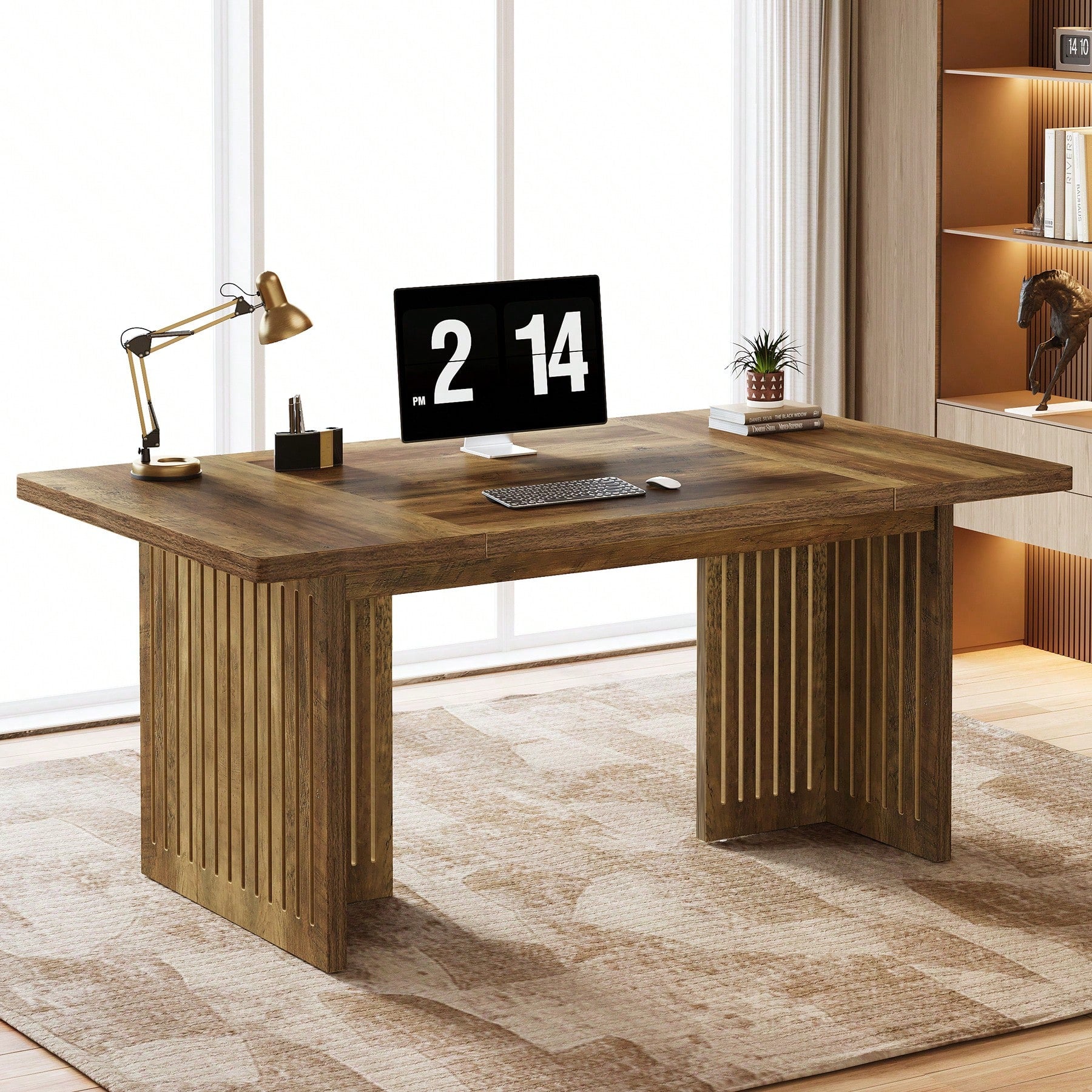 This 63‑Inch Large Wood Executive Desk in Rustic Brown blends farmhouse warmth with modern functionality, offering a spacious and stable workspace. The thick engineered wood tabletop is both waterproof and scratch-resistant, supported by a sturdy 2"×2" powder-coated metal frame with reinforced triangular welding for long-lasting durability. Ideal for home offices, executive suites, or creative studios, this desk enhances any space with its clean lines and practical storage options.