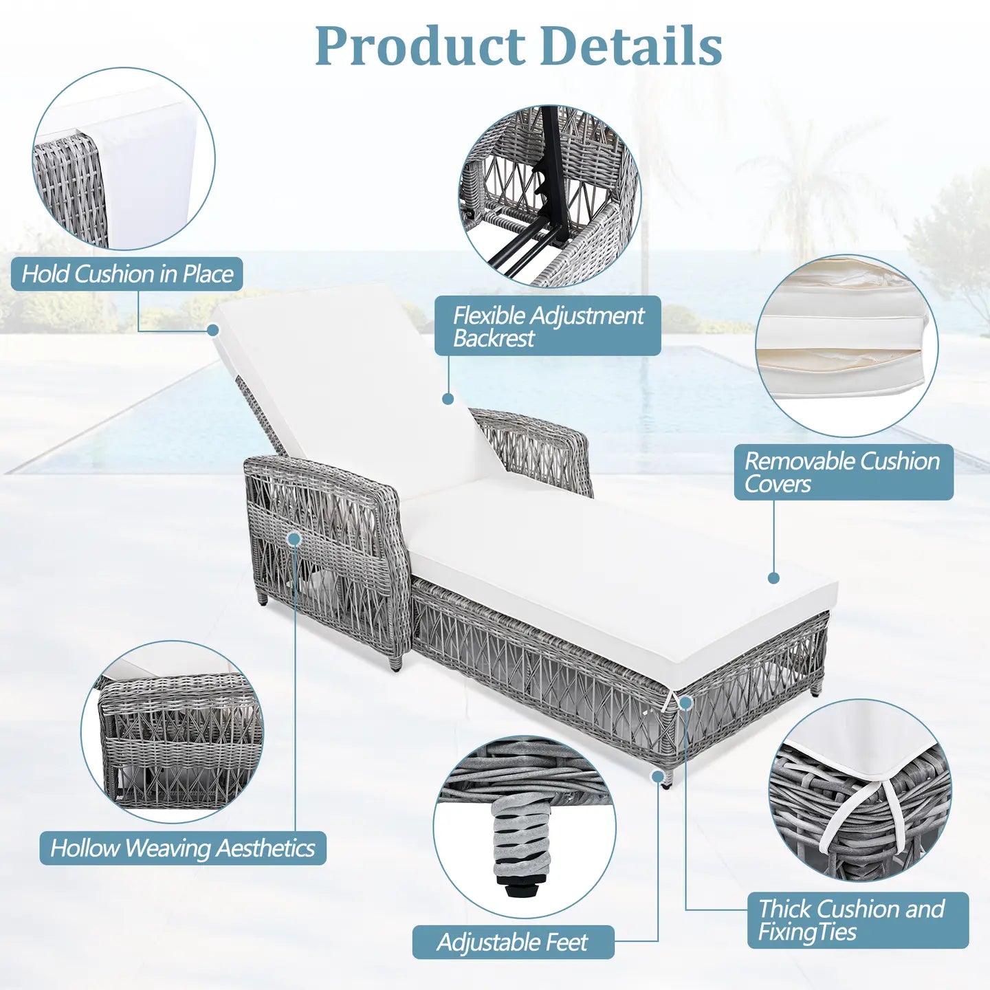 Relax in modern luxury with this gray wicker chaise lounge—designed to elevate your outdoor living space with comfort and style. Crafted from high-density PE rattan over a rust-proof, powder-coated aluminum frame, this piece is as durable as it is elegant. The plush, 4-inch-thick cushion is wrapped in UV- and water-resistant Sunproof® fabric, offering year-round performance and removable convenience for easy washing. Lightweight yet sturdy, it’s perfect for poolside lounging, patios, or a serene garden retreat. A timeless silhouette and neutral tones make this lounger a seamless fit with coastal, contemporary, or classic décor.