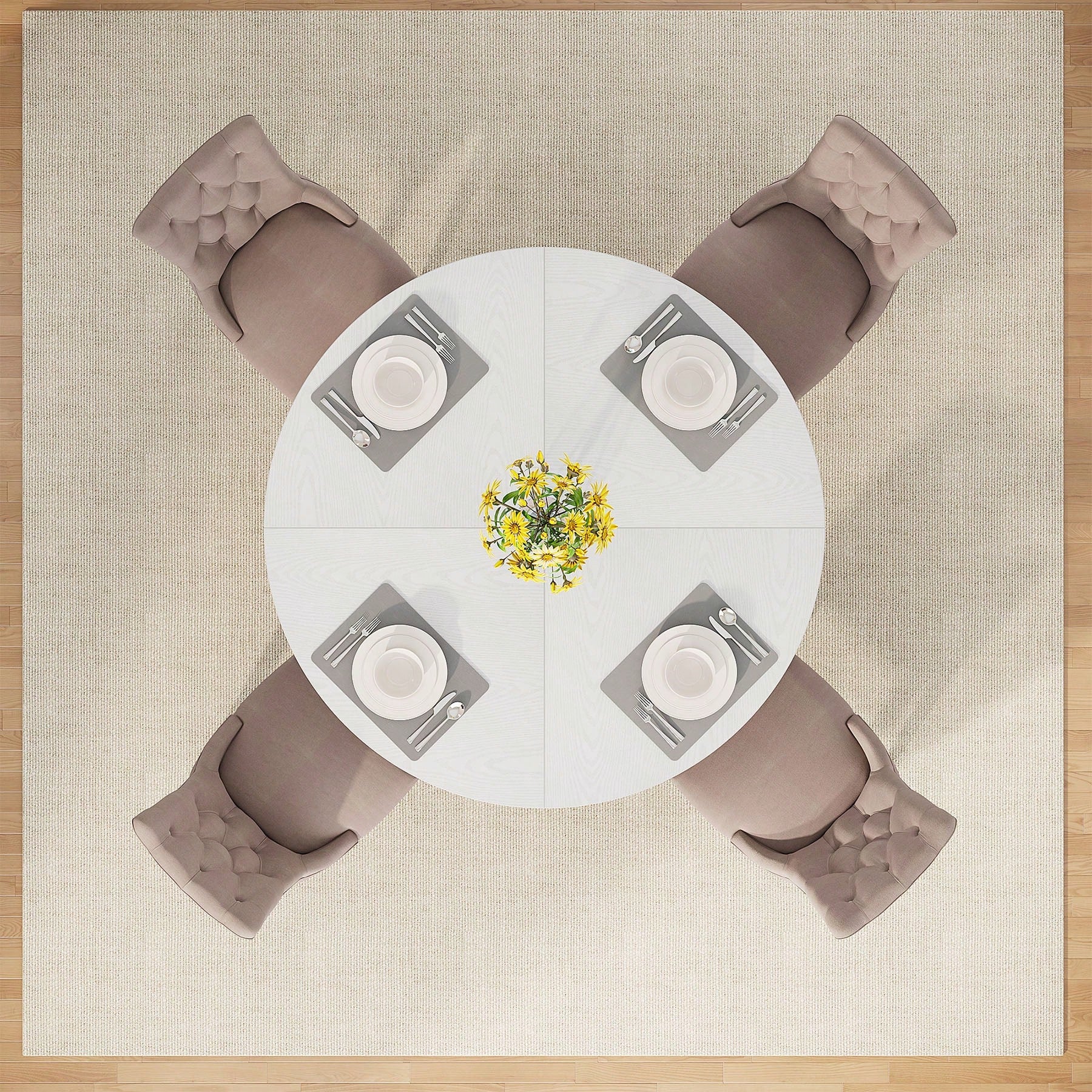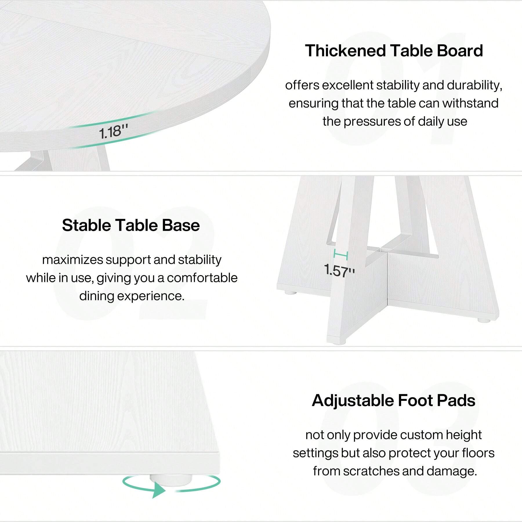 Add charm and versatility to your dining space with this 47″ Round Farmhouse Dining Table, perfect for cozy family meals and casual conversations. The solid wood tabletop features a classic farmhouse finish and rustic plank detailing, while sturdy legs offer reliable support. Its compact design comfortably seats four and fits beautifully in kitchens, breakfast nooks, or living areas. With an easy-to-follow assembly process, this table brings warm, timeless style and everyday functionality to your home.