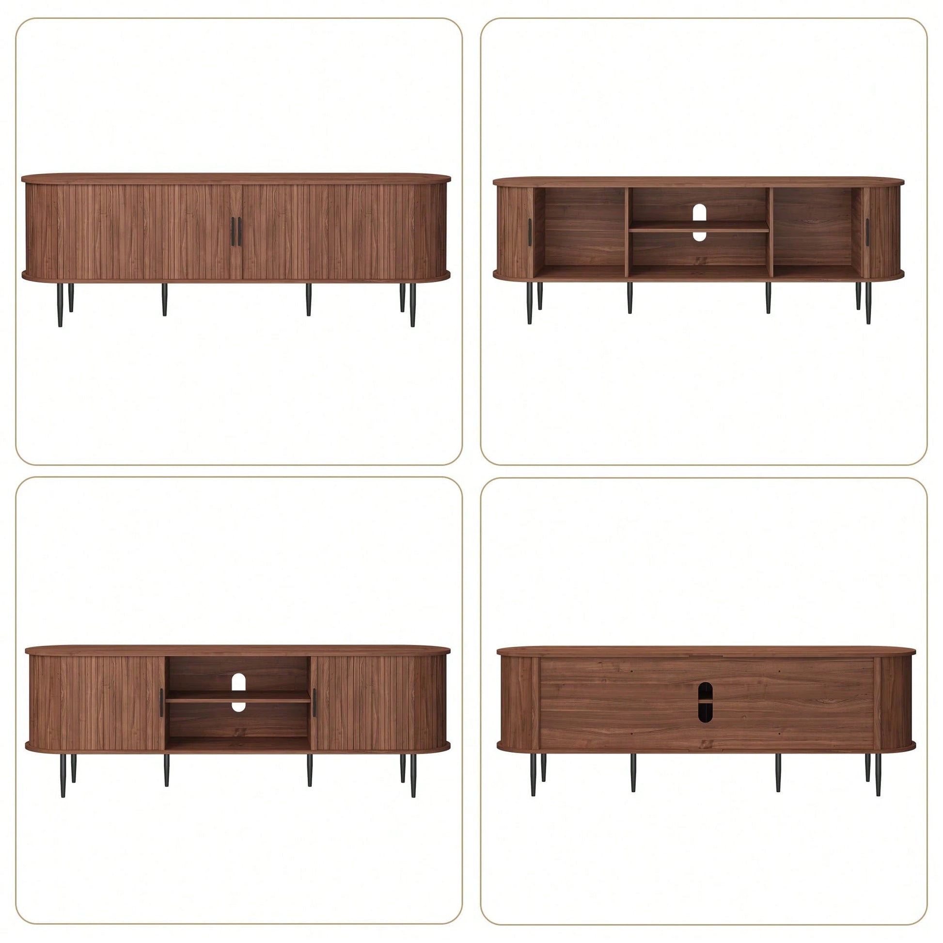 Elevate your living room with the Aspen Farmhouse TV Stand With Adjustable Shelf—a versatile media console engineered to accommodate TVs ranging from 55″ to 80″. Designed with timeless farmhouse charm, this console blends clean lines and functional detailing to suit a variety of home styles. The expansive surface supports modern flat-screen TVs, while integrated cable management keeps clutter at bay for a tidy and polished setup. Constructed from durable P2-rated particleboard with supportive legs, it offers both stability and style. Keep electronics and accessories organized with the flexible storage design, including adjustable shelves that adapt to your needs.