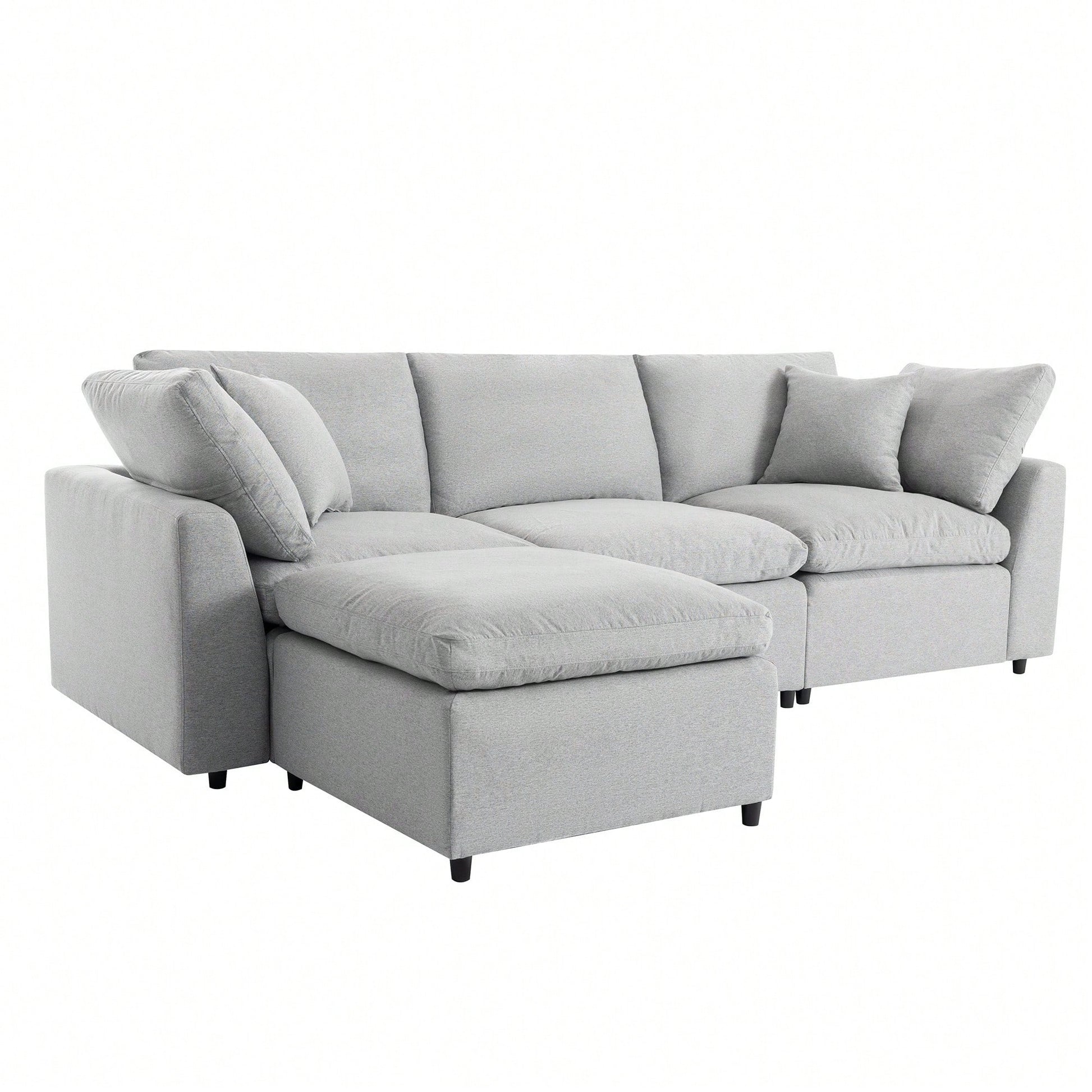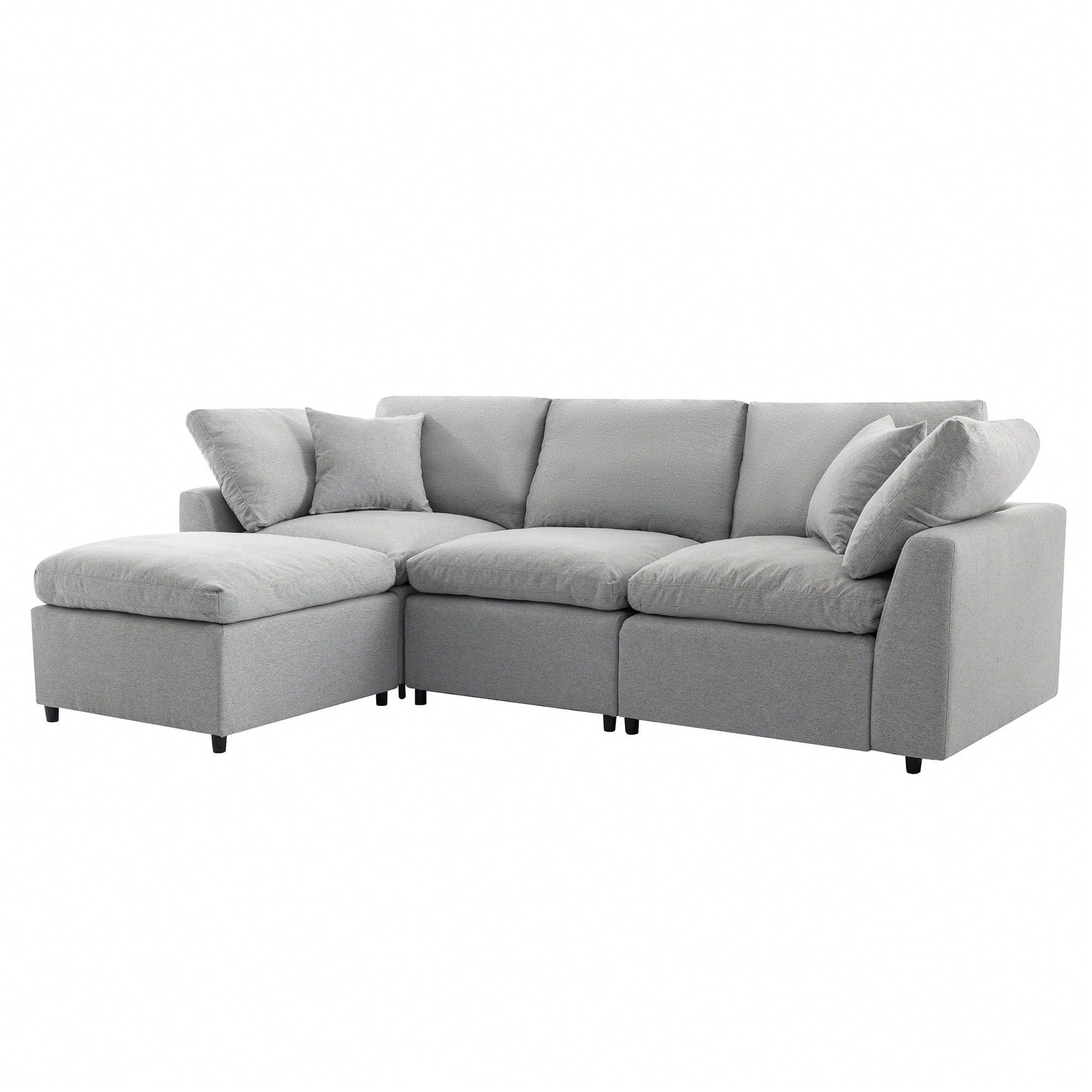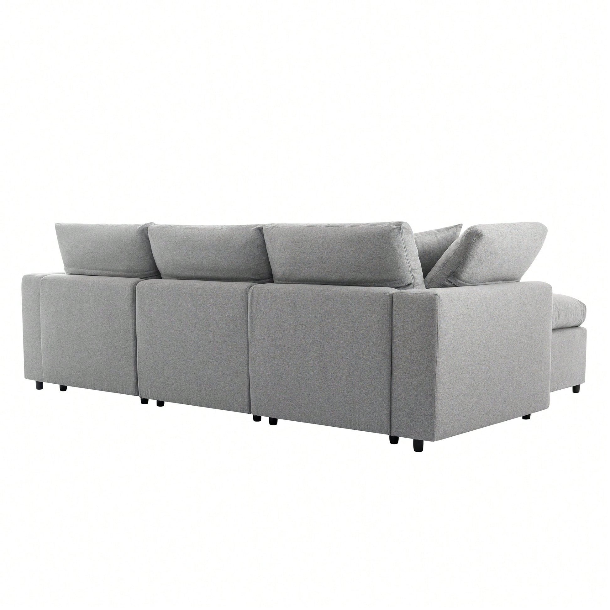 Elevate your living room with this ultra-comfy down-filled sectional, designed with a versatile reversible chaise and a clean, modern silhouette. Wrapped in a soft fabric and generously padded with feather-fill cushions, this L-shaped couch delivers cloud-like comfort and deep seating ideal for lounging, entertaining, or relaxing with family. The modular design offers flexibility to rearrange the chaise for left- or right-side use, adapting to any space. Whether you're stretching out or hosting guests, this convertible sectional brings together softness, style, and smart functionality in one stunning package.