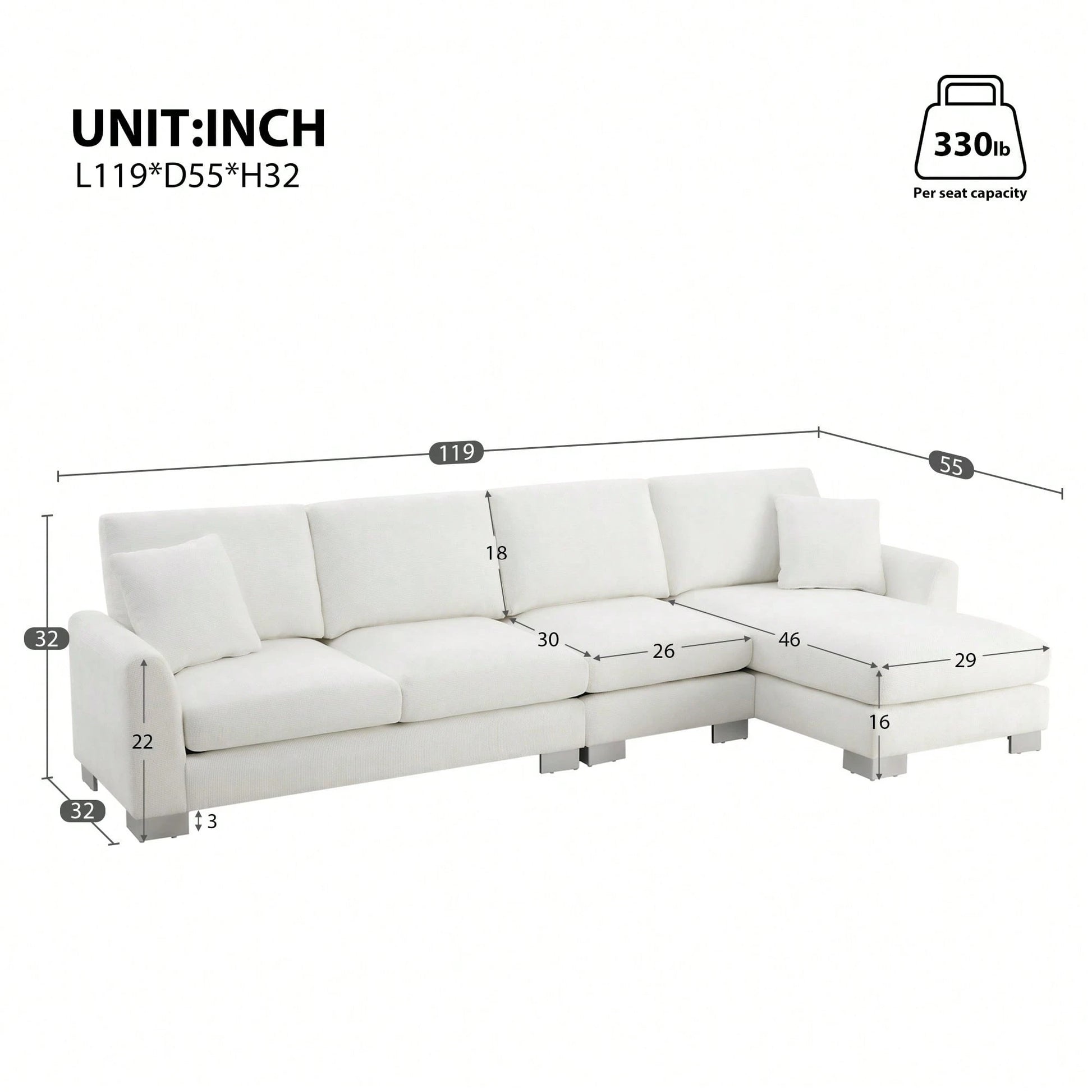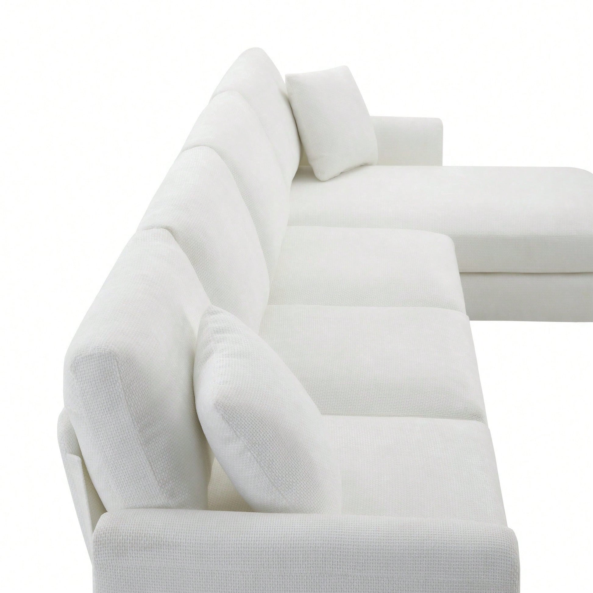 Elevate your living space with this oversized 5‑seat L‑shaped sectional sofa, wrapped in soft chenille upholstery and ideal for families, entertainers, or spacious lounges. The generous chaise and deep seats offer luxurious comfort for movie nights or casual lounging, while the included plush pillows add both style and support. Crafted with a sturdy hardwood frame and dense foam cushions, this sectional blends durability with elegance and is perfectly suited for modern apartments, offices, or family rooms.
