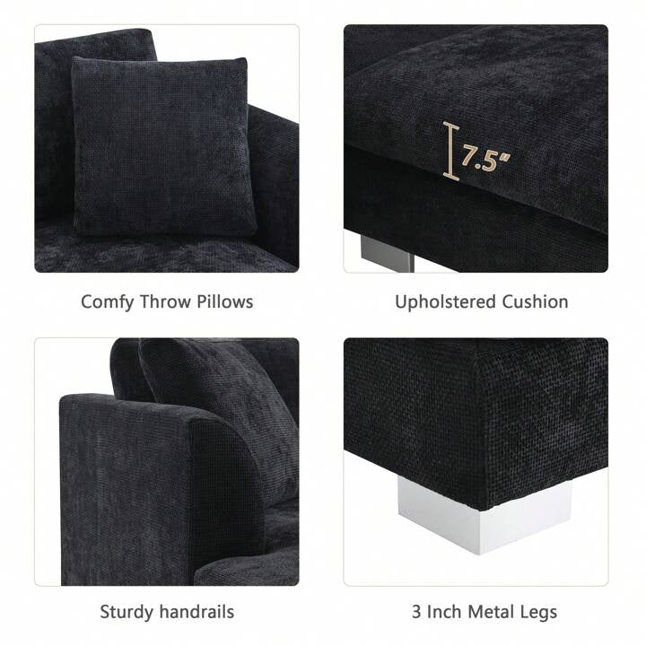 Elevate your living space with this L‑shaped sectional sofa, wrapped in soft chenille upholstery and ideal for families, entertainers, or spacious lounges. The generous chaise and deep seats offer luxurious comfort for movie nights or casual lounging, while the included plush pillows add both style and support. Crafted with a sturdy hardwood frame and dense foam cushions, this sectional blends durability with elegance and is perfectly suited for modern apartments, offices, or family rooms.