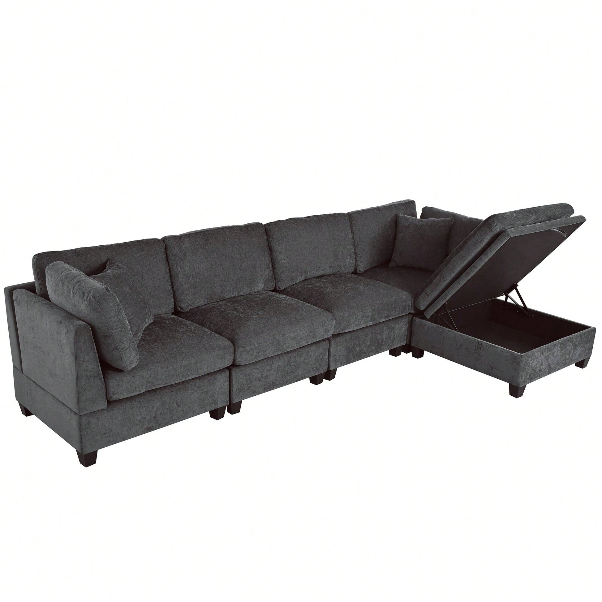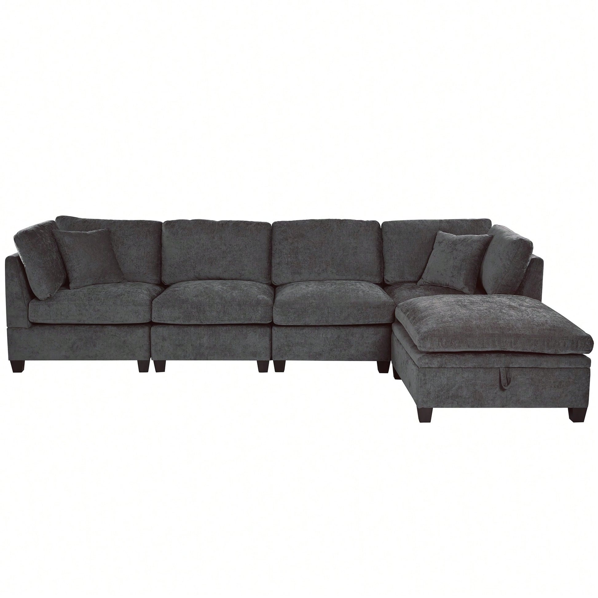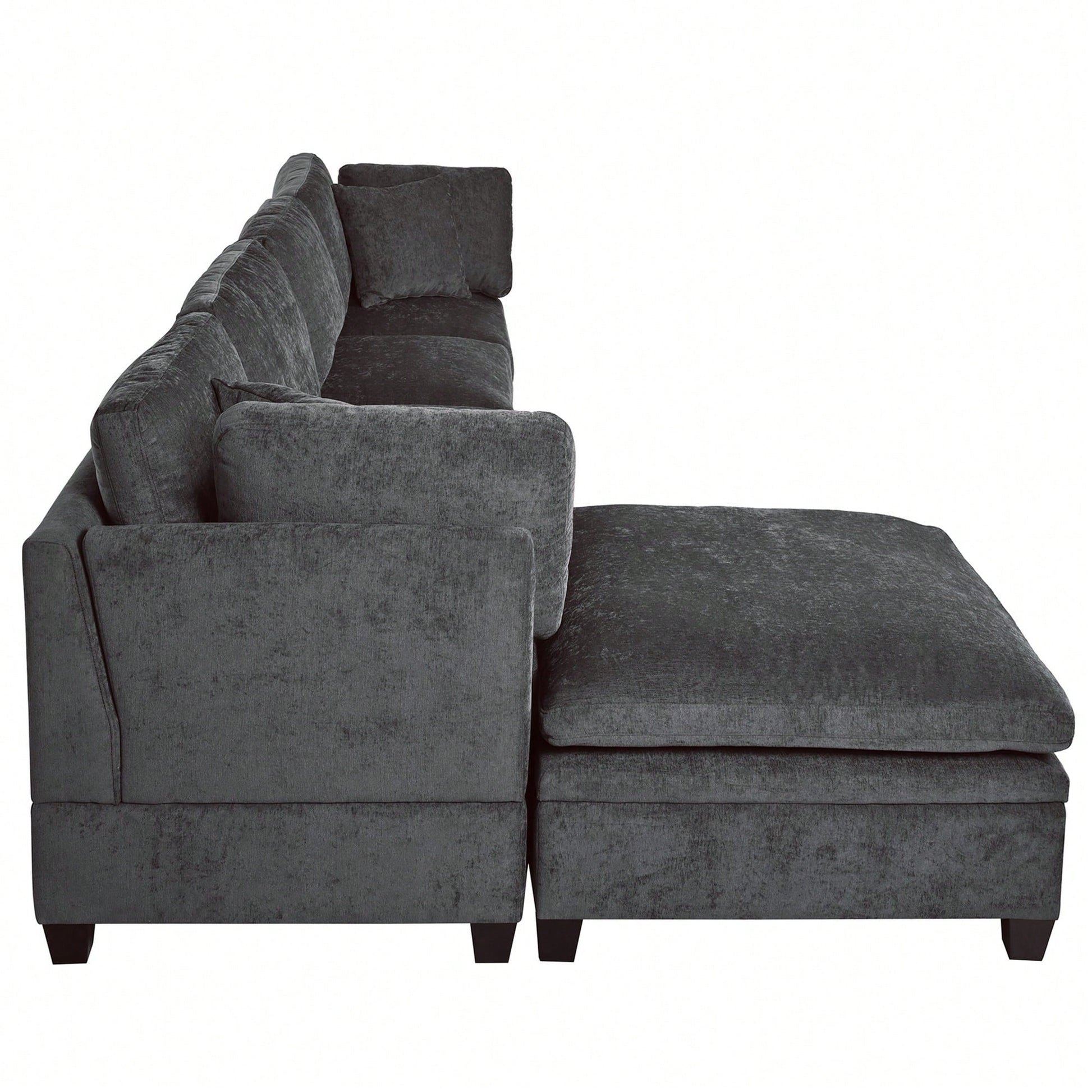 Transform your living area with this versatile U-style sectional sofa featuring a removable storage ottoman and built-in hidden cup holders. Upholstered in soft, durable fabric, the deep, plush seating and integrated armrests offer exceptional comfort for lounging or entertaining. The ottoman lifts easily to tuck away blankets and remotes, while the sleek silhouette and neutral color palette suit modern, family, or apartment-style interiors. Designed for effortless entertaining and everyday functionality, this sectional brings adaptable style and convenience to any room.