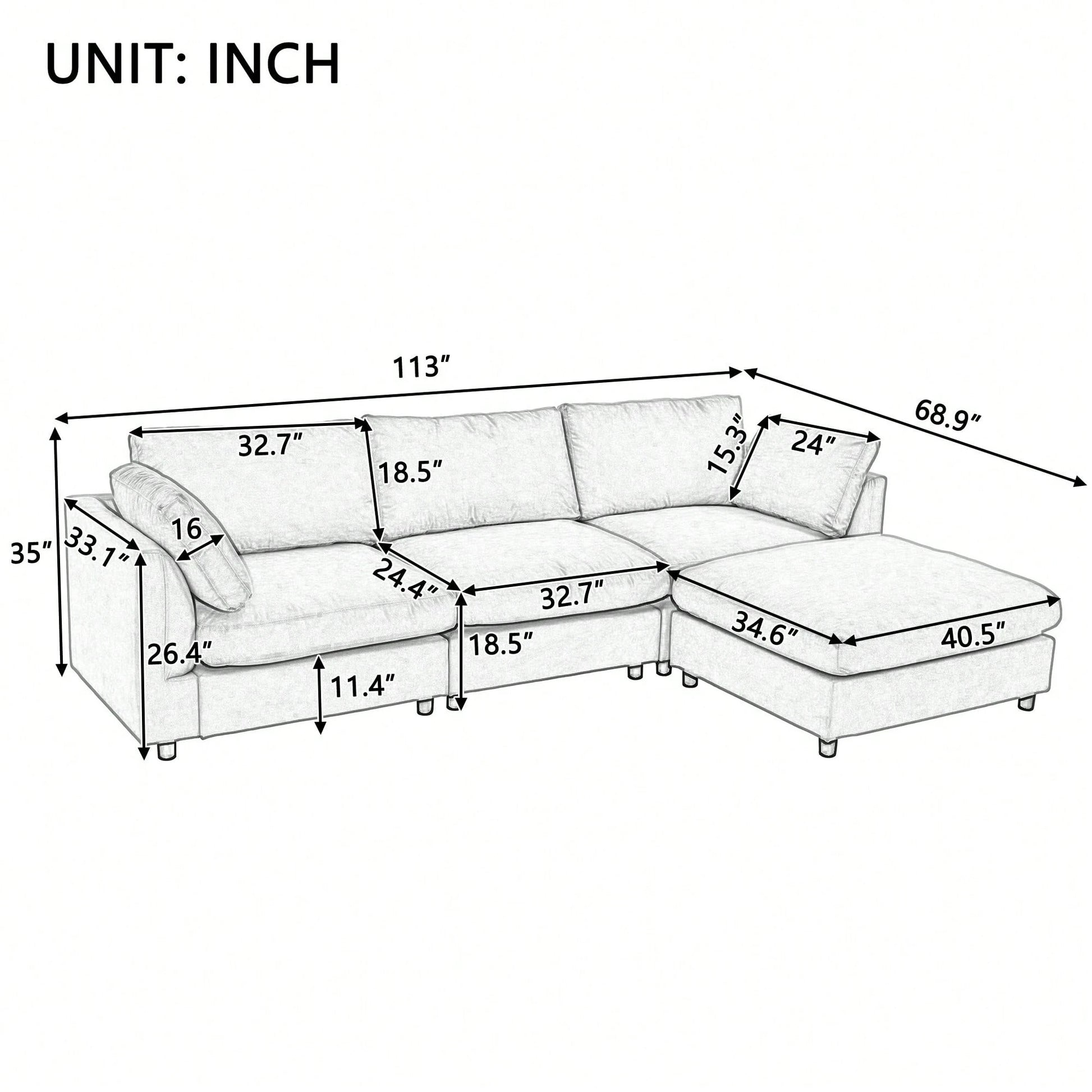 LORA 113" SOFA w/ OTTOMAN - BEIGE