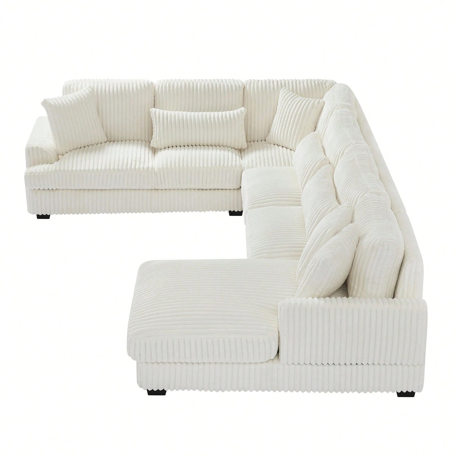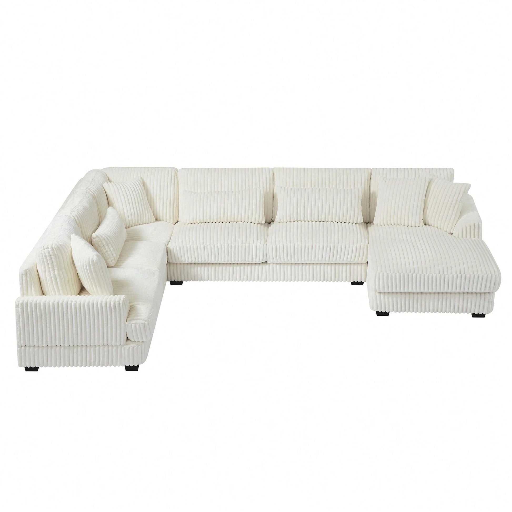 Transform your living area with this versatile U-style sectional sofa featuring a removable storage ottoman and built-in hidden cup holders. Upholstered in soft, durable fabric, the deep, plush seating and integrated armrests offer exceptional comfort for lounging or entertaining. The ottoman lifts easily to tuck away blankets and remotes, while the sleek silhouette and neutral color palette suit modern, family, or apartment-style interiors. Designed for effortless entertaining and everyday functionality, this sectional brings adaptable style and convenience to any room.