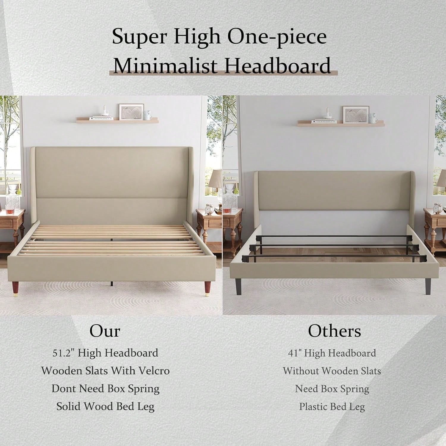 This Queen‑Size Upholstered Wingback Platform Bed Frame is a stylish and functional foundation designed for comfort and convenience. Featuring a tall wingback headboard upholstered in luxe velvet or linen, it includes sturdy wood slats and reinforced steel framing for exceptional support—no box spring required. Built with EVA-padded elements and Velcro-secured slats, this bed is engineered to be silent. Easy to assemble with included tools and parts, it delivers a convenient and elegant sleeping solution.