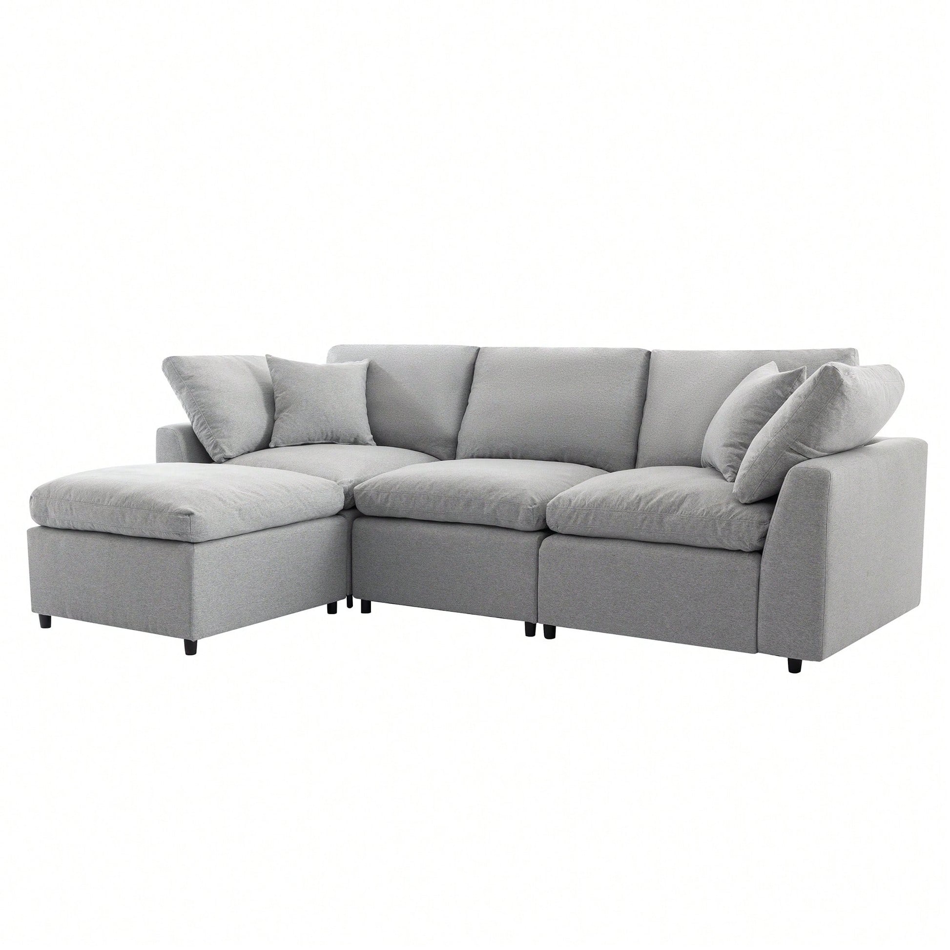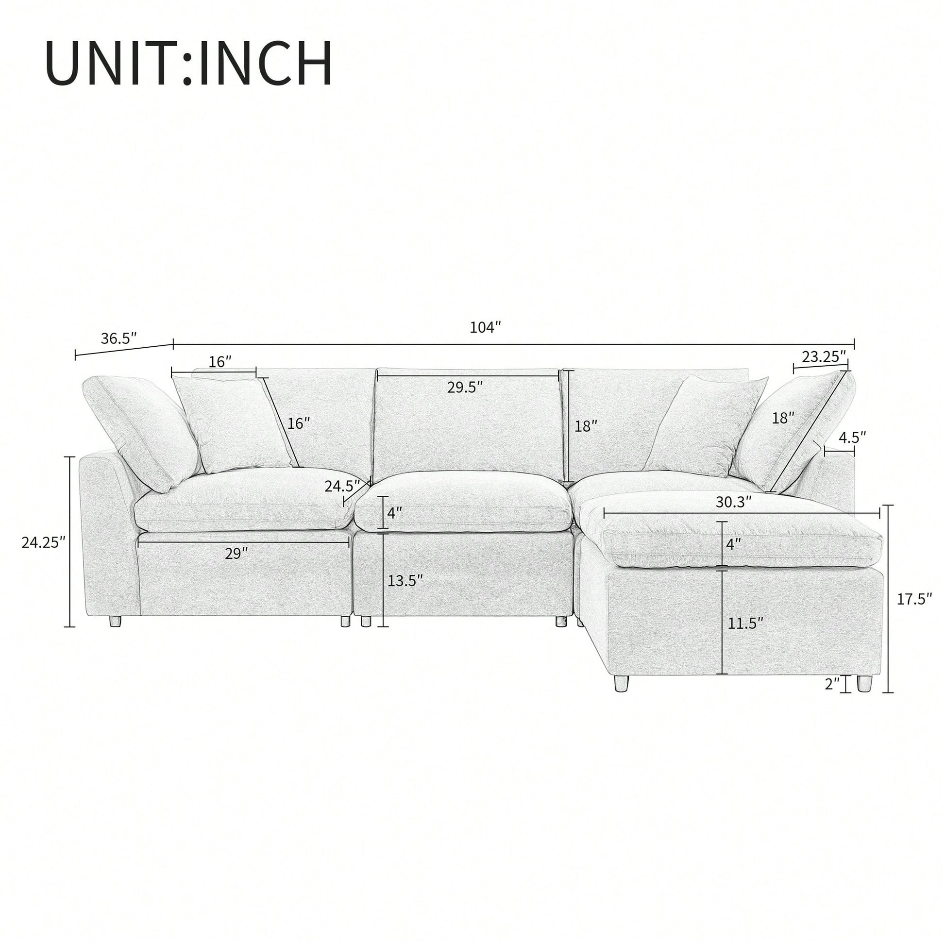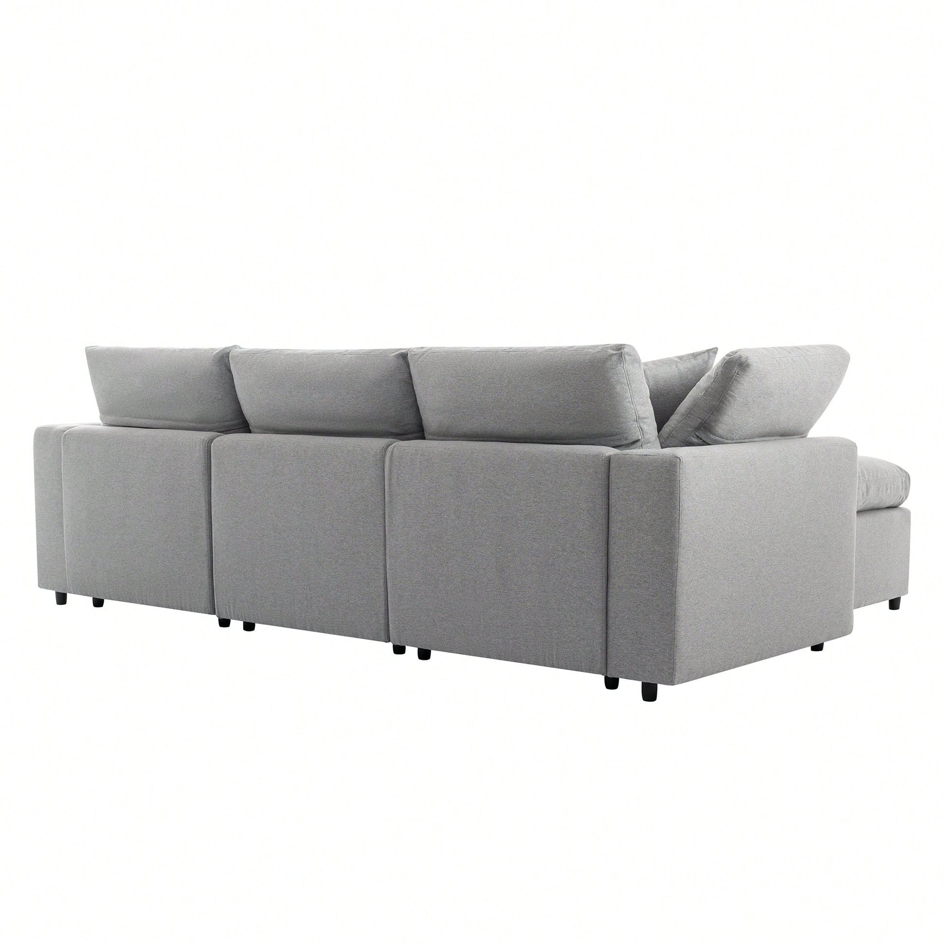 Indulge in luxurious comfort with this L-shaped sectional sofa, crafted with soft down-filled upholstery for a cloud-like seating experience. The reversible chaise adds versatility, letting you adapt the layout to fit your space. Perfect for living rooms, apartments, or lofts, this modular sofa offers plush cushions, clean modern lines, and a supportive frame for long-lasting use. Whether you're lounging solo or entertaining guests, this piece offers a perfect balance of comfort and contemporary style.