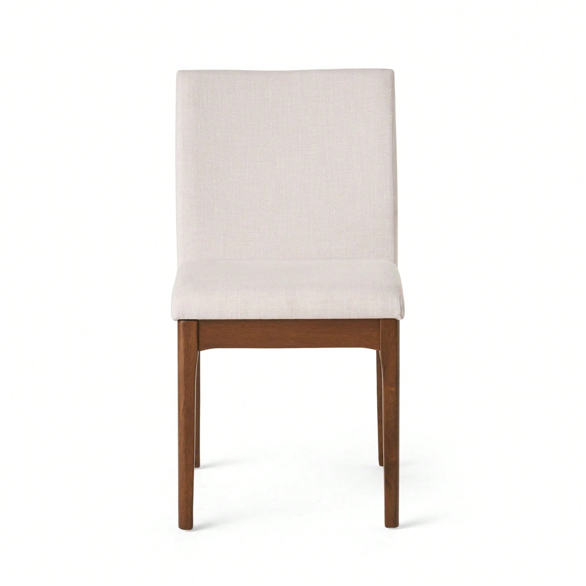 Add timeless elegance to your dining room with this set of 2 linen-blend upholstered chairs, supported by sturdy solid rubberwood legs. Each chair features a gently curved, padded back and seat wrapped in breathable, neutral-toned fabric that complements both rustic and modern interiors. The thoughtful design provides comfortable support for long dinners or everyday use. With strong wood construction and stylish simplicity, these chairs bring a touch of warmth and durability to any space.