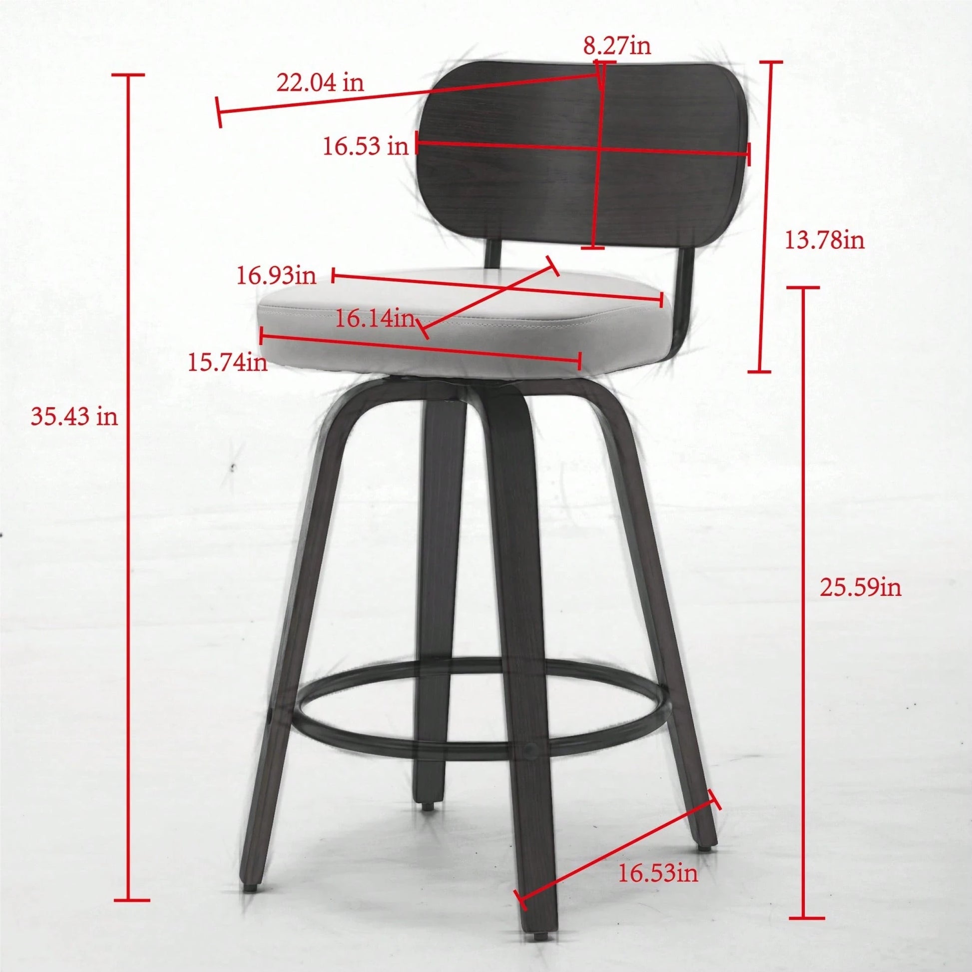 Elevate your kitchen island or bar area with these stylish swivel bar stools—featuring warm walnut-toned bentwood legs and easy-turn faux leather seats. The curved backrest and padded seat provide modern comfort, while the 360° swivel allows effortless movement and casual interaction. The sturdy, counter-height design and sleek silhouette deliver both function and flair, making these stools ideal for contemporary, retro-inspired, or Scandinavian interiors. Durable, comfortable, and elegant—perfect for everyday use or entertaining.