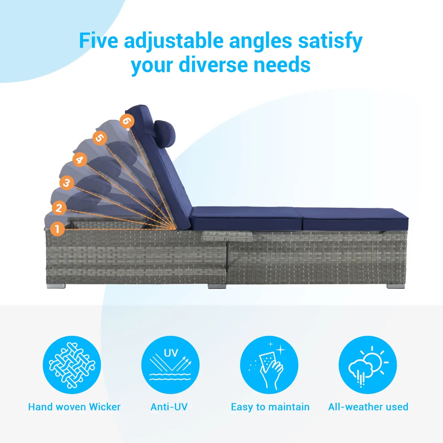 OASIS CHAISE LOUNGE - GRAY / NAVY (SET OF 2)
