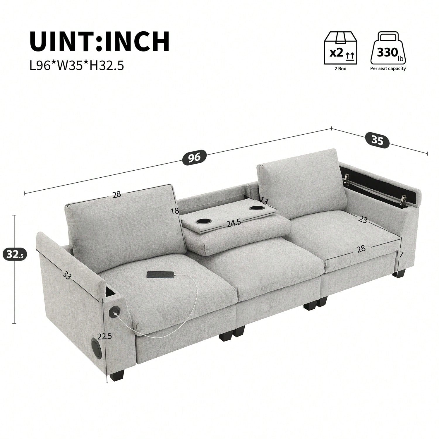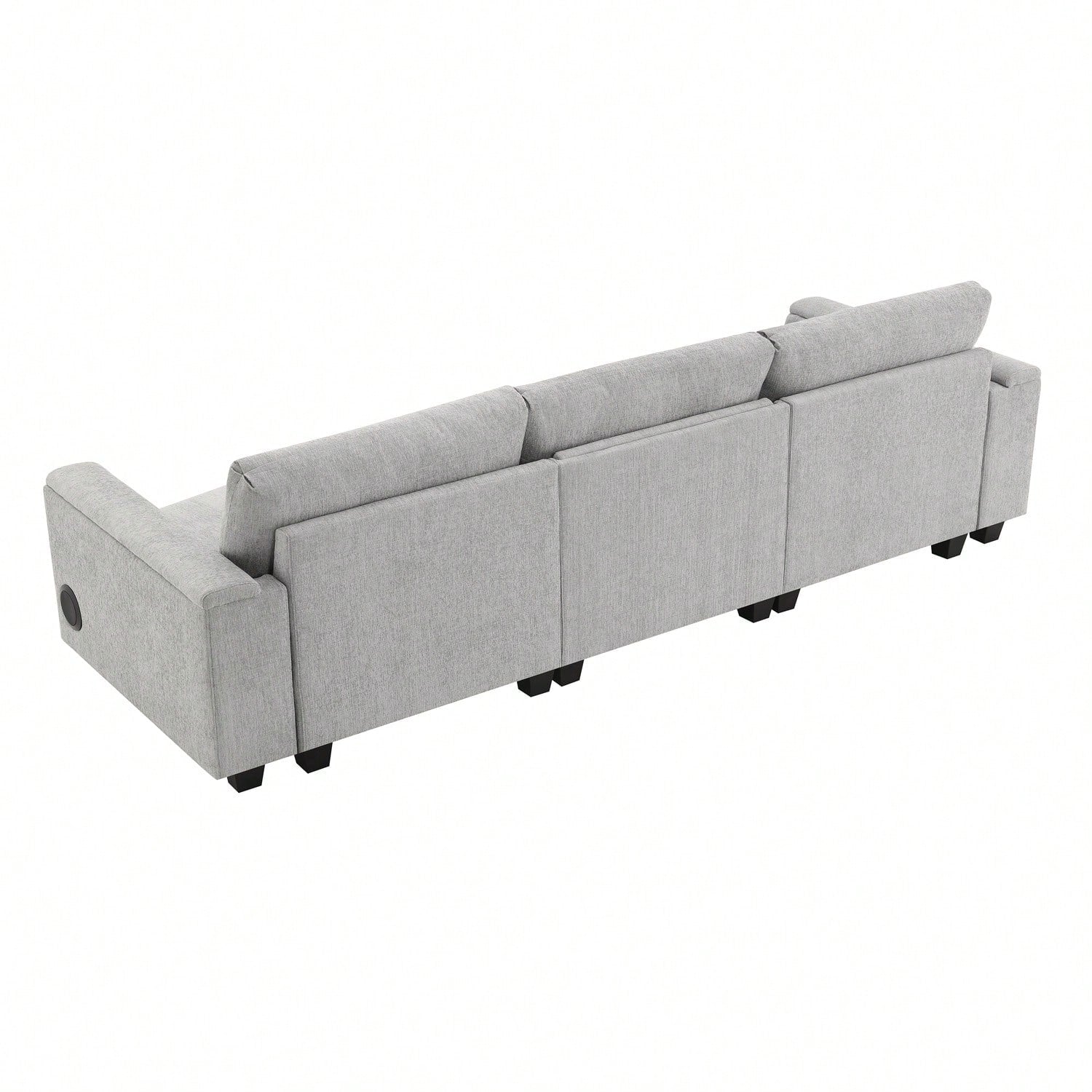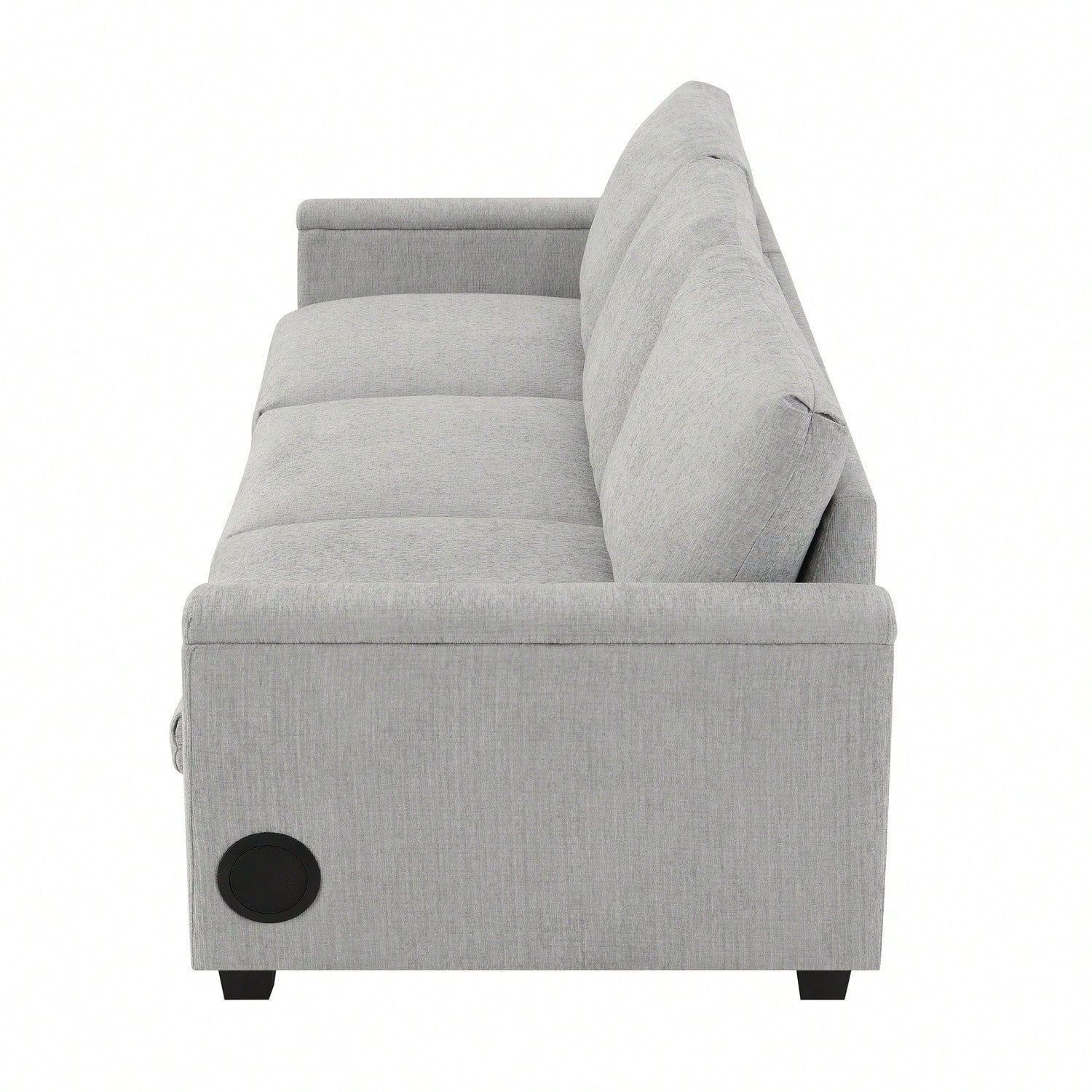 Upgrade your living room or entertainment area with this ultra-comfy Merax chenille sectional sofa, designed for modern convenience and relaxation. Featuring a generously sized chaise lounge and wide seating, it includes integrated features like Bluetooth speakers, a pop-up table, cup holders, hidden armrest storage, and convenient USB charging ports. The soft chenille upholstery and plush cushioning create a cloud-like feel, while smart design elements keep essentials close at hand, making this sectional perfect for lounging, hosting guests, or leisurely movie nights.