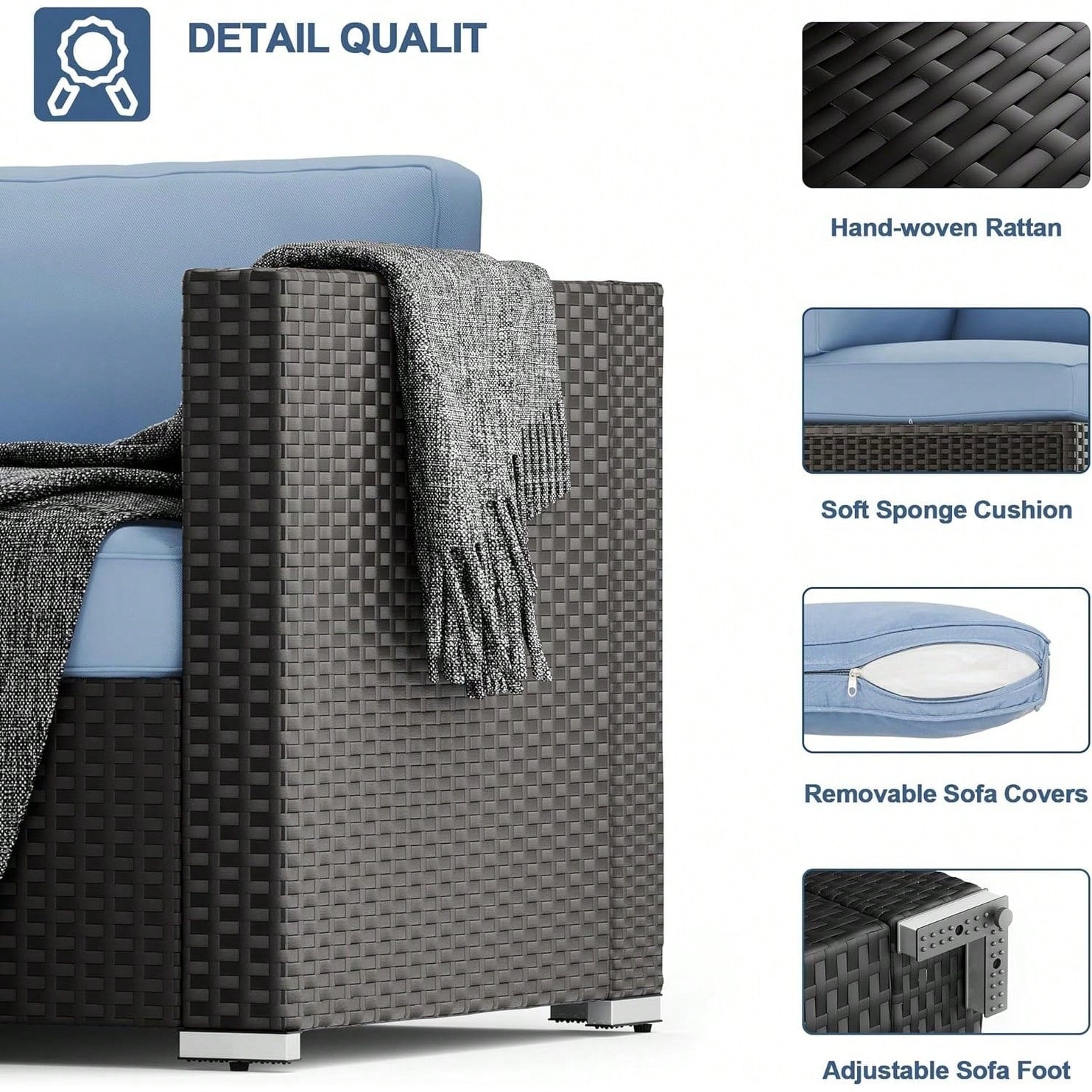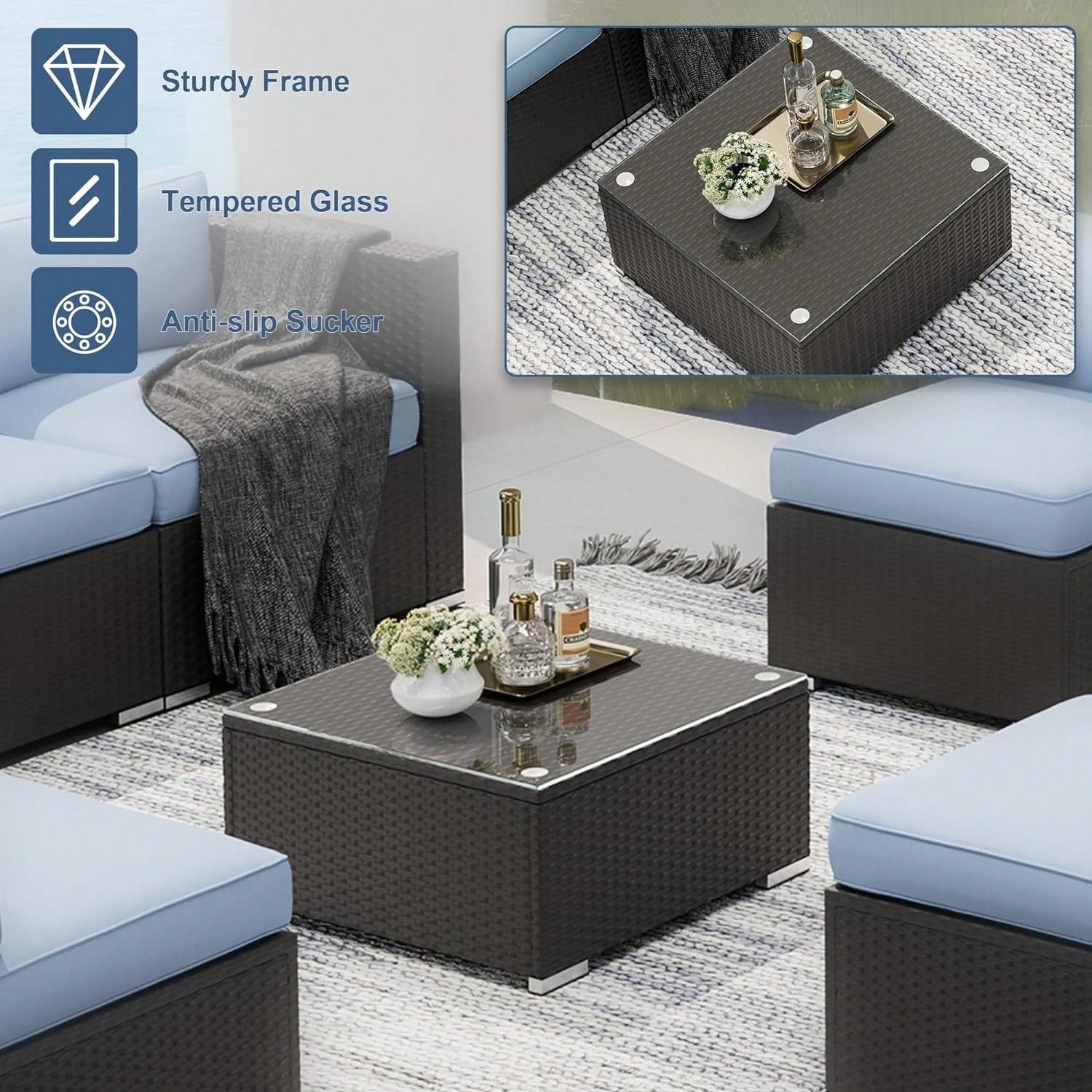 Upgrade your outdoor space with this 7-piece patio furniture conversation set, designed for both style and comfort. Crafted with a sleek black wicker frame and soft, weather-resistant cushions, this sectional sofa set brings modern elegance to your backyard, patio, or deck. The modular design allows you to customize the layout to fit your space, while the included tempered glass coffee table adds a practical surface for drinks, snacks, or décor. Ideal for entertaining or relaxing, this set combines durable construction with cozy seating, making it a perfect addition to any outdoor living area.
