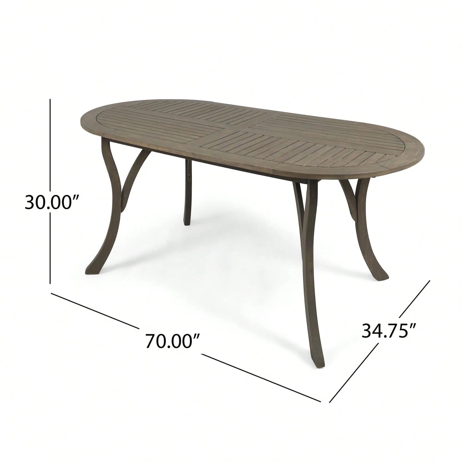 This Wooden Outdoor Dining Table blends rustic charm with modern durability, crafted from solid acacia hardwood known for its resilience and natural beauty. Finished in a rich tone, the spacious 70″ tabletop delivers a waterproof, scratch‑resistant surface that's easy to clean and ideal for everyday outdoor dining or gathering. Supported by sturdy wood legs and inclusive of all hardware and instructions, it arrives ready for quick, two-person assembly.